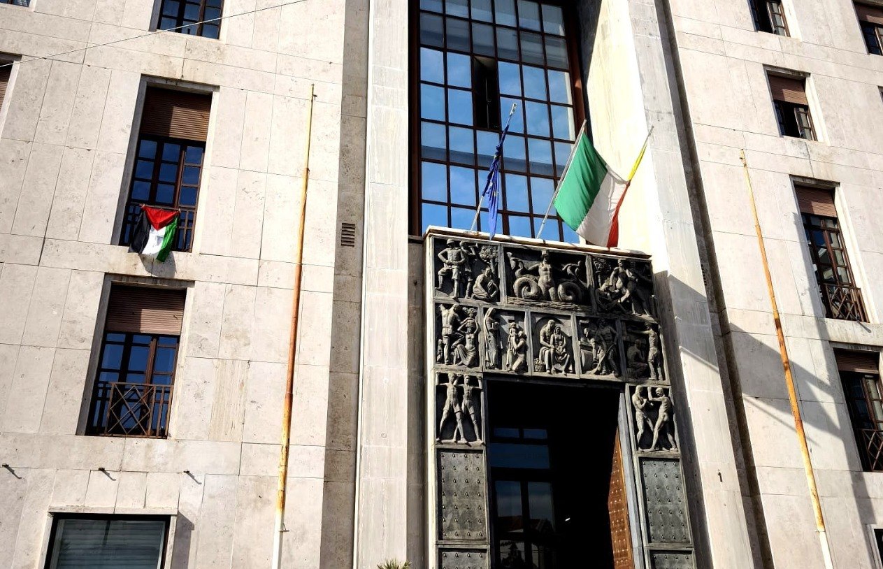 Tu sei qui: AttualitàNapoli, esposta la bandiera della Palestina sulla facciata della sede istituzionale