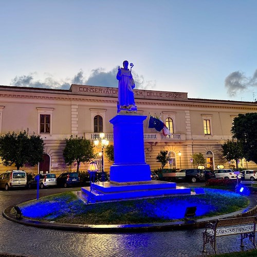 Ieri sera il via al provvedimento, con piazza Sant'Antonino, dove ha sede il Palazzo Municipale e che ospita una statua raffigurante il Santo Patrono, illuminata di azzurro per accogliere un bimbo di nome Salvatore. Le luci saranno accese all'imbrunire, anche oggi e giovedì, come annuncio alla collettività del lieto evento.