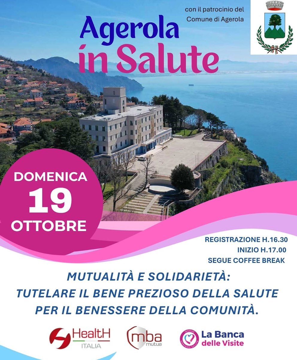Si chiama "Agerola Salute" l'iniziativa che si svolgerà domenica 19 ottobre, dalle ore 16.30 al Campus Principe di Napoli, Parco Colonia Montana.