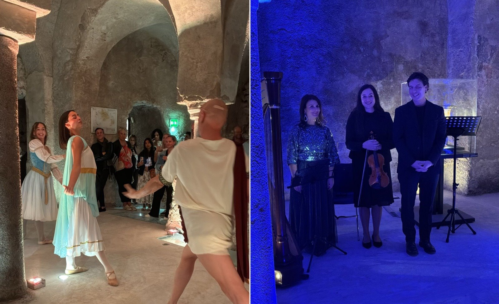 Nonostante le temperature più fresche, numerosi visitatori hanno preso parte alla visita della villa romana, per poi assistere a un coinvolgente spettacolo di musica e danza all'interno della suggestiva cripta medievale.