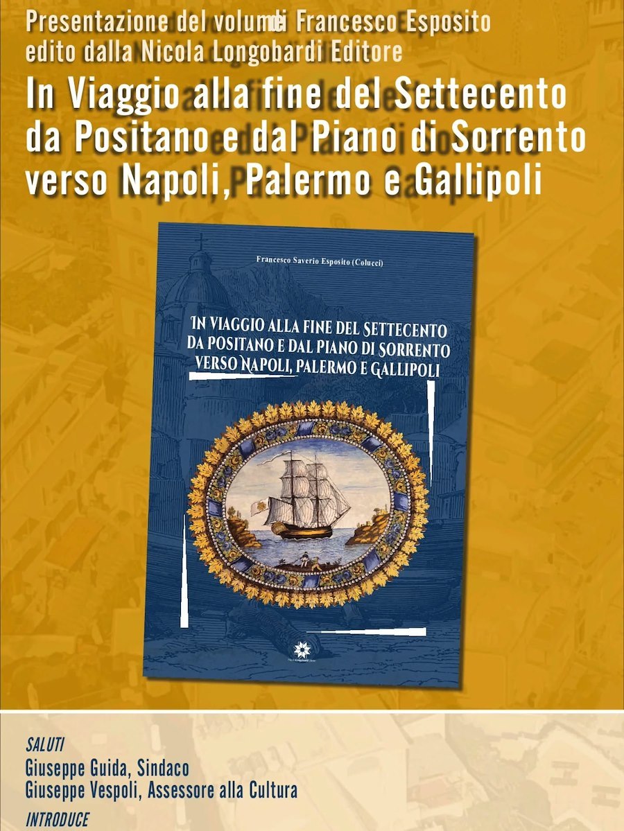 Un tuffo nella memoria storica della Costiera Amalfitana, tra rotte marittime, identità locali e connessioni profonde con il Sud Italia: è questo il cuore della presentazione del volume di Francesco Saverio Esposito, dal titolo "In Viaggio alla fine del Settecento da Positano e dal Piano di Sorrento verso Napoli, Palermo e Gallipoli", edito da Nicola Longobardi Editore.