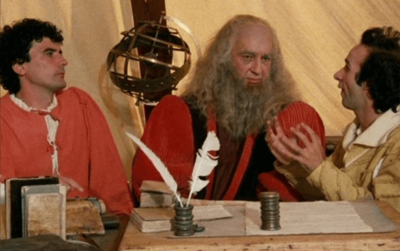 Indimenticabile il suo esilarante ritratto di Leonardo da Vinci nel film cult "Non ci resta che piangere" (1984), scritto, diretto e interpretato da Roberto Benigni e Massimo Troisi. In una delle scene più amate della commedia italiana, Bonacelli interpreta un Leonardo geniale ma disorientato, bersaglio delle richieste surreali di Troisi, che tenta di spiegargli le regole del gioco di carte da scopa.