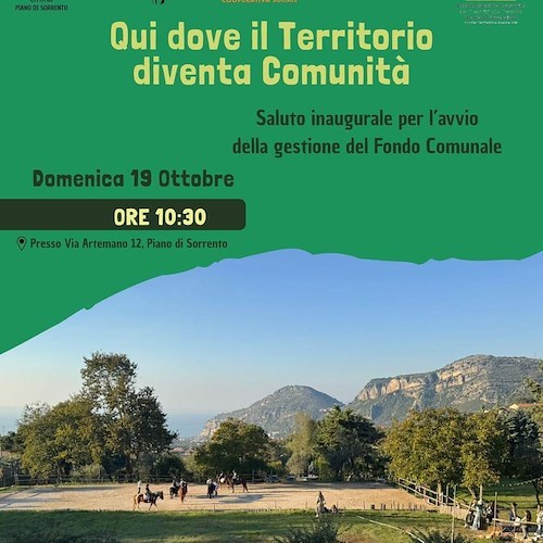 "Qui dove il territorio diventa comunità". Domenica 19 ottobre, alle ore 10:30, in via Artemano 12, a Piano di Sorrento, si terrà il saluto inaugurale della nuova gestione del Fondo Comunale.