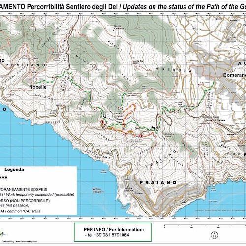 Sono in corso in questi giorni importanti interventi di messa in sicurezza sul Sentiero degli Dei, uno degli itinerari escursionistici più noti e frequentati della Costiera Amalfitana. I lavori, disposti dal Comune di Agerola, hanno reso necessaria la chiusura temporanea di alcuni tratti del percorso.